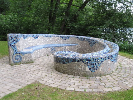 Als Zwischenstop bei einer Rundtour um den See lädt die Wellenbank zum Verweilen ein. Die Mosaik-Farben greifen dabei fantasievoll die Elemente Wasser, Erde und Luft auf. Von hier aus eröffnet sich ein wunderbarer Blick auf den Hammersee und den Bodenwöhrer Wasserspringer.