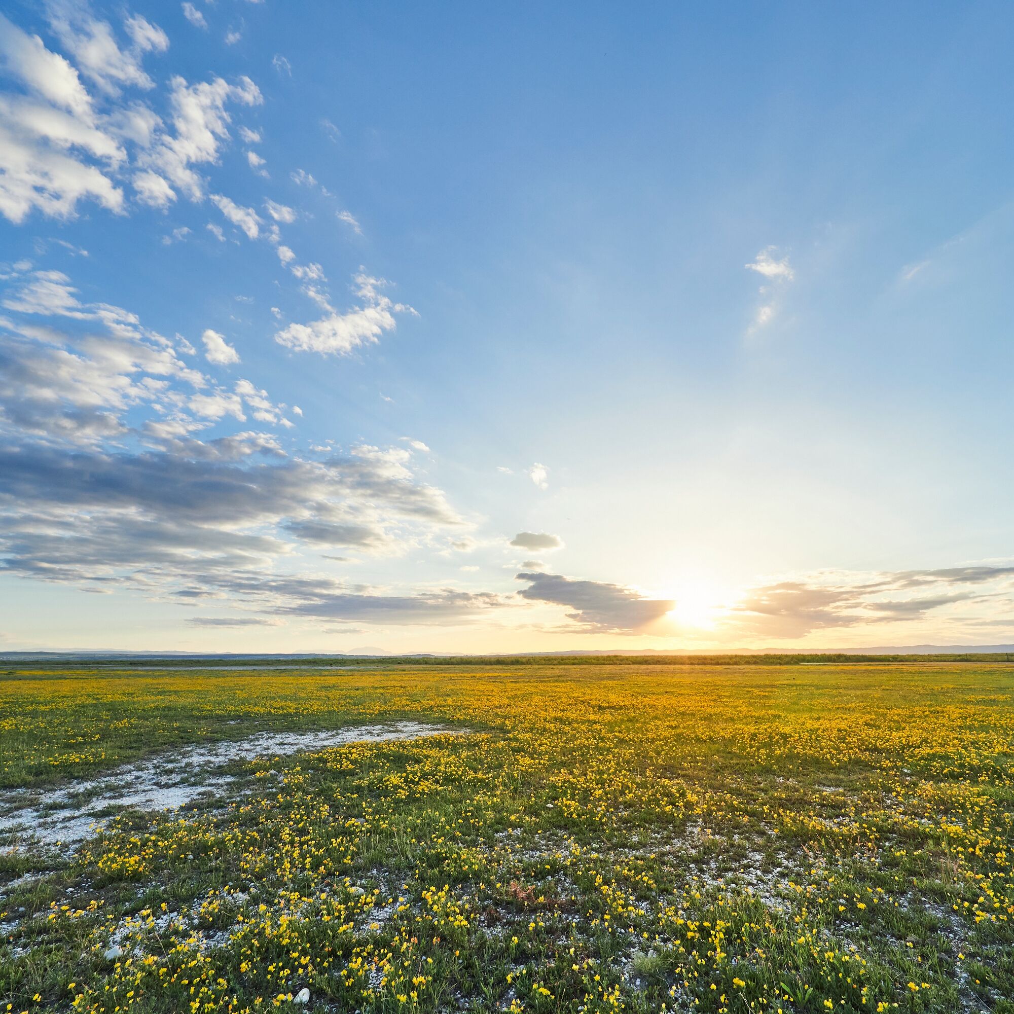 Der Weg führt Sie in diesem Bereich durch eine typische Steppenlandschaft - auf allen Seiten mit Blick bis zum Horizont - kurzer Trockenrasen, Büsche und vereinzelte, üppig tragende Nussbäume - in der Ferne sieht man grasendes Vieh bzw. Przewalski-Pferde. Dieses Teilgebiet heißt Geiselsteller und ist ein Mosaik aus leicht bis tief durchnässten Senken, Halb- und Trockenrasen, Wasserflächen, Schilf- und Weideflächen und die weiß leuchtenden Zickstellen. Nur wenige Pflanzen sind an ein Leben an diesem Extremstandort mit seinen ausblühenden Salzen angepasst.