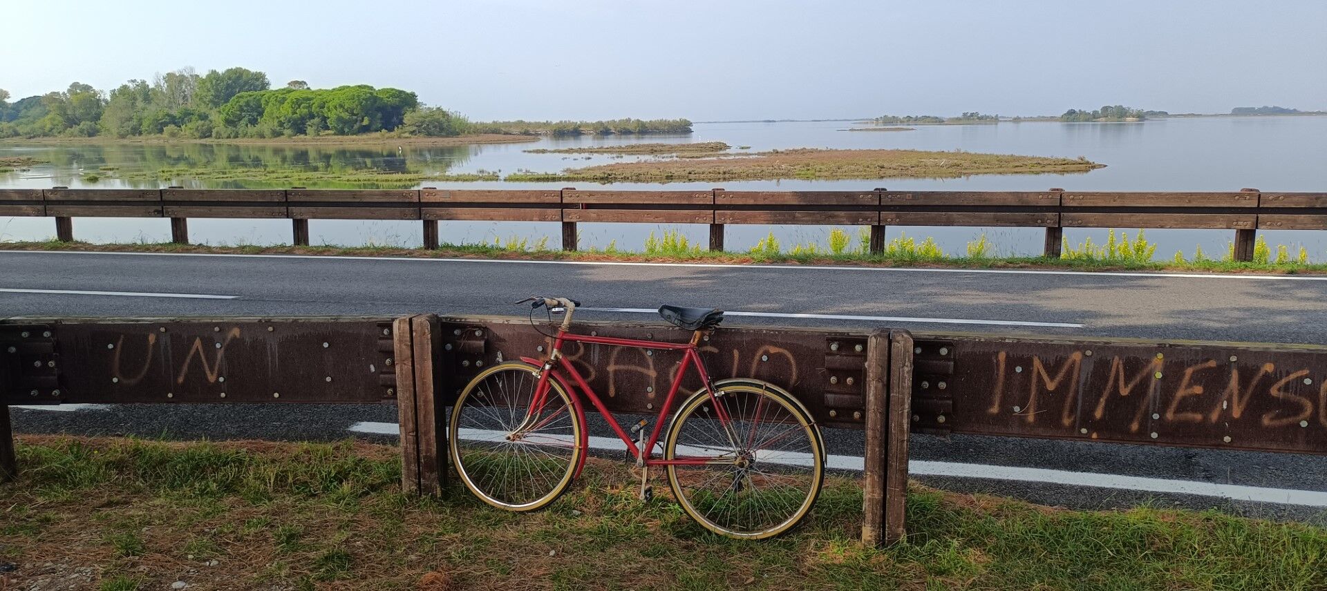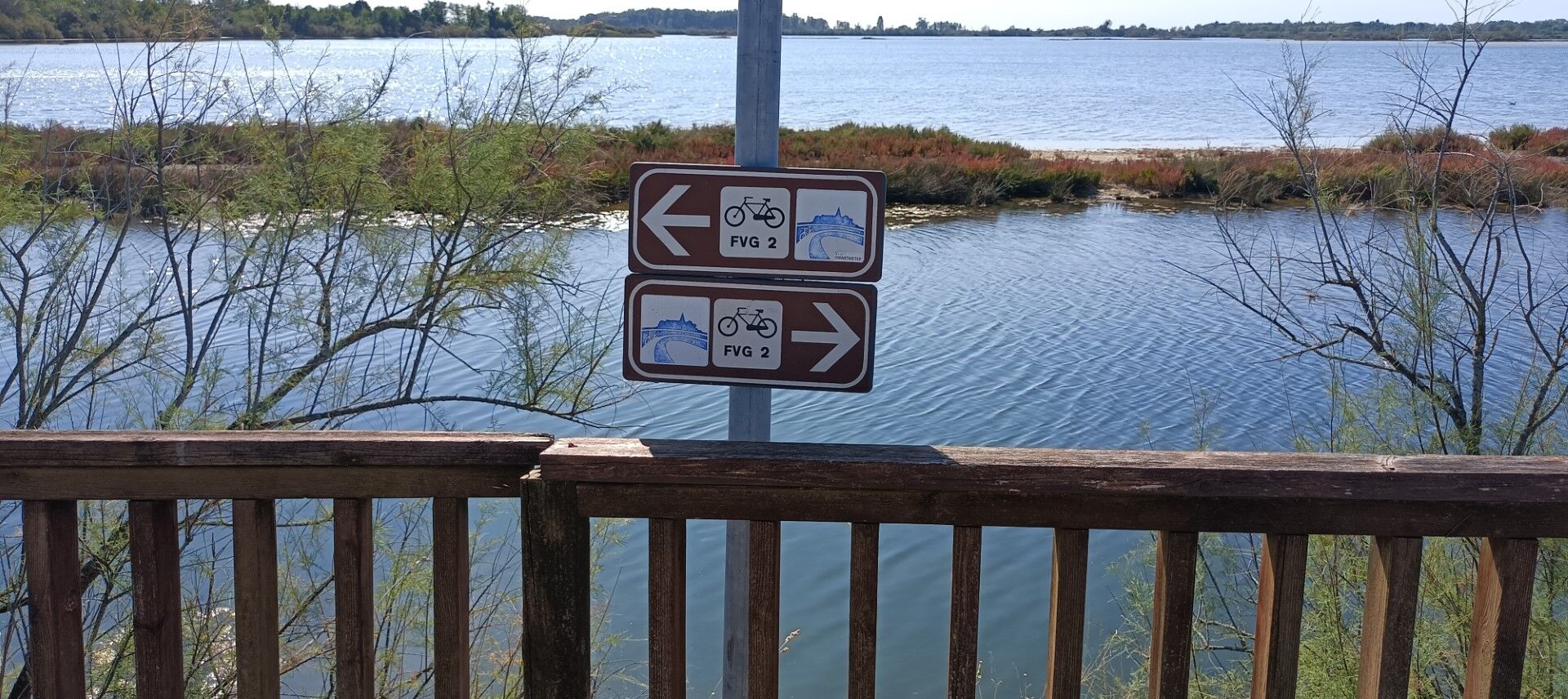 Von Grado fährt man auf dem städtischen Radweg in östlicher Richtung bis zum Stadtteil Primero. Dieser Bereich ist geprägt von der Lagunenlandschaft, während der Glockenturm des Heiligtums von Barbana...