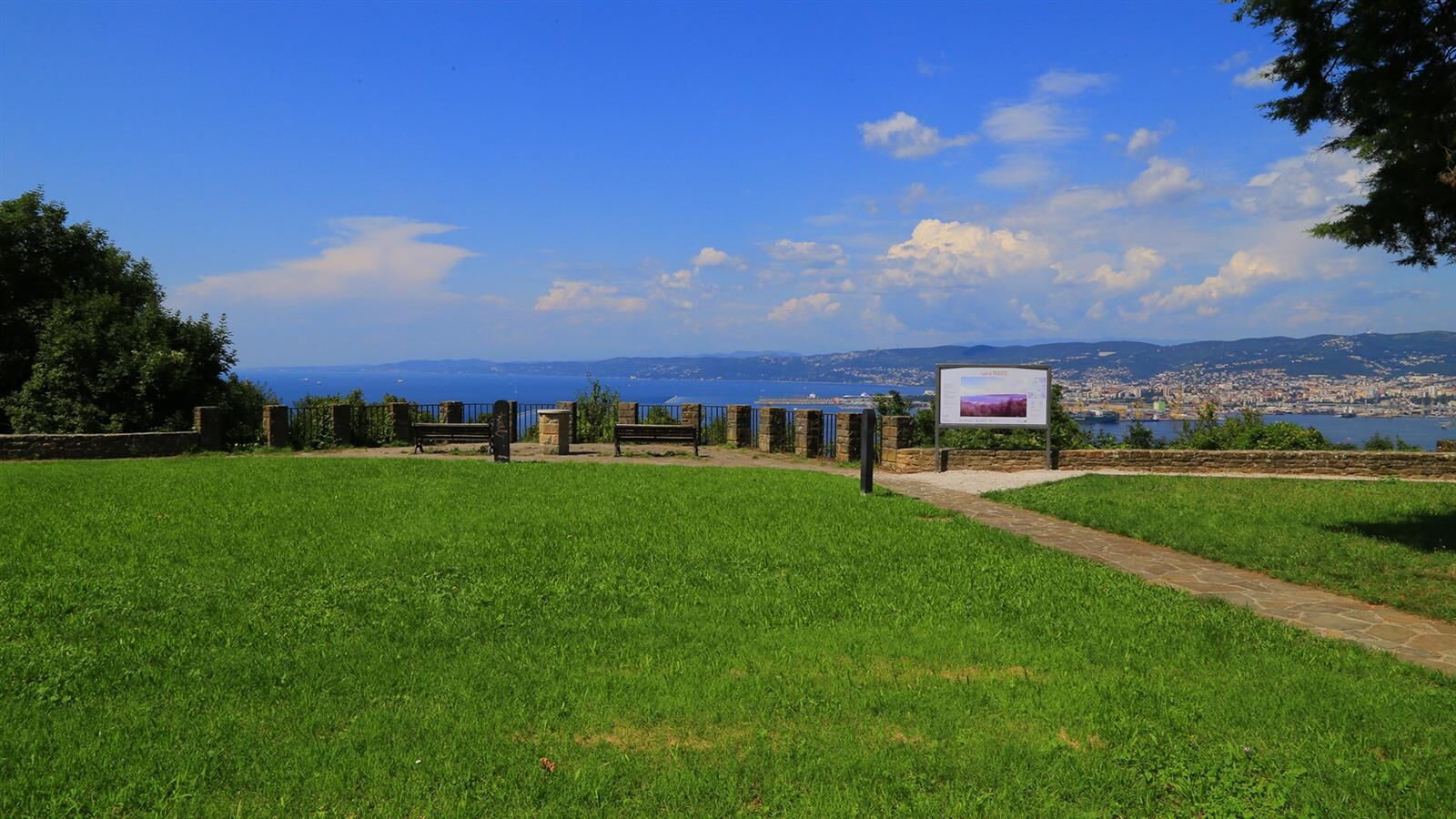 Lungo questo percorso sono presenti attrezzi per esercizi ginnici e numerose panchine che invitano ad una sosta, sia per ammirare il panorama a 180° sul golfo (dalle falesie di Duino sino alla Val Rosandra) sia per godersi la quiete della natura muggesana.