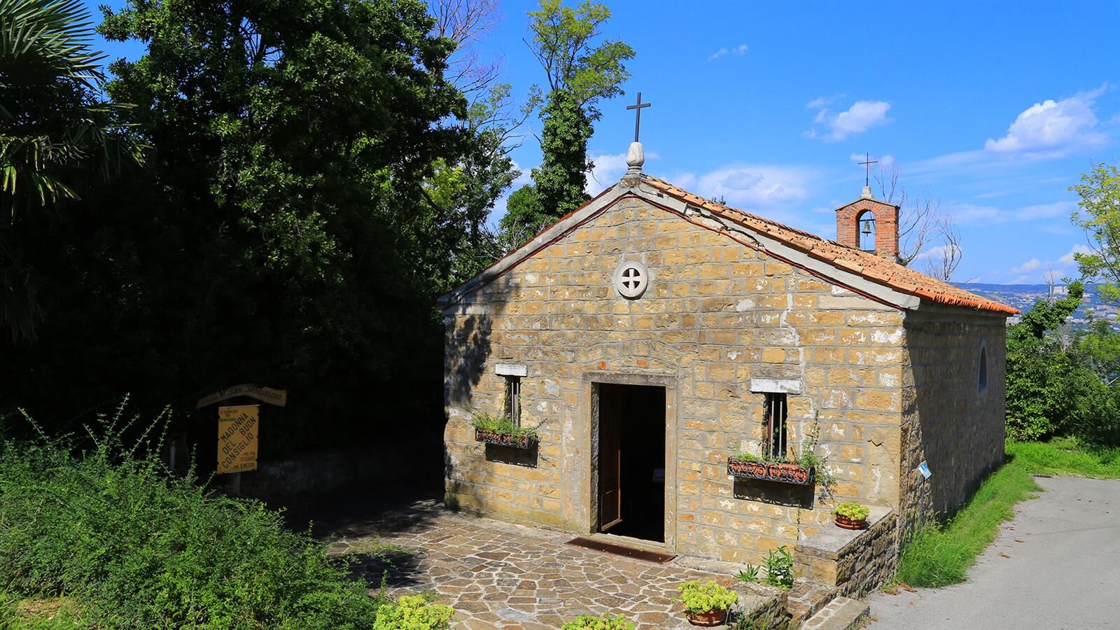Da questo poggio che domina Muggia è possibile raggiungerne il centro attraverso una scalinata e una successiva strada in “masegno” (denominazione locale dell’arenaria).