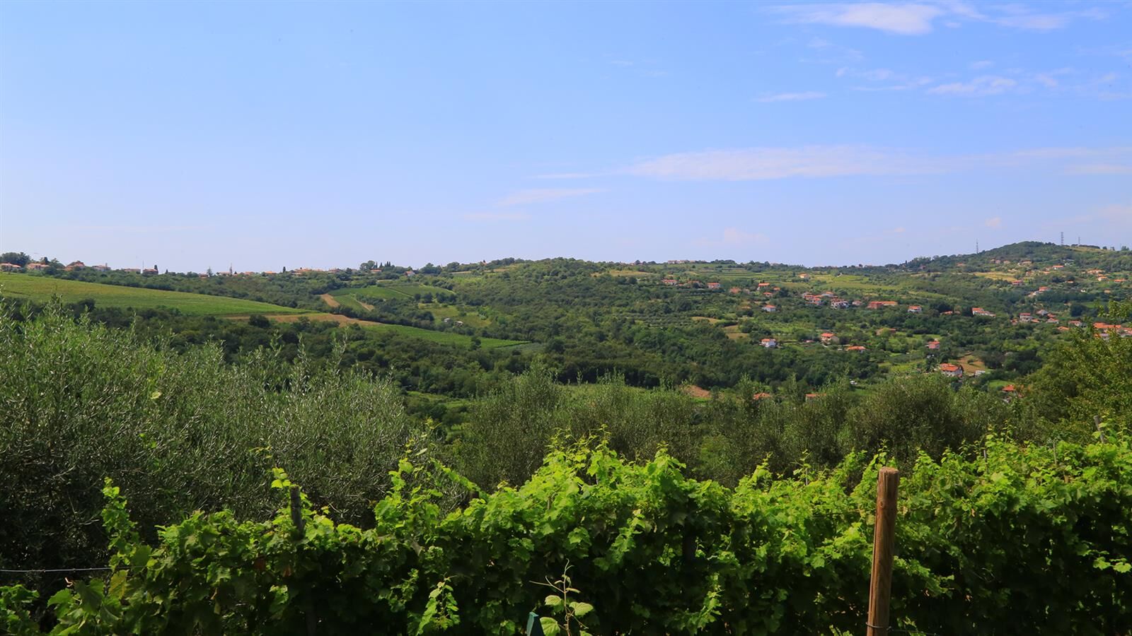 Dal dosso si possono notare le frazioni di Vignano, di Stramare e, in lontananza, i paesini carsici Crociata di Prebenico e di Plavje sul versante sloveno. Dopo pochi minuti si incontra la strada che conduce all’abitato di Plavje, in Slovenia. La si percorre un brevissimo tratto in leggera discesa in direzione E/N-E e quindi, imboccata la rotatoria, si prosegue su tratto asfaltato verso Strada per i Laghetti. Al termine di quest’ultima, proseguendo per un sentiero e seguendo le indicazioni dei cartelli informativi, si giunge ai Laghetti delle Noghere.