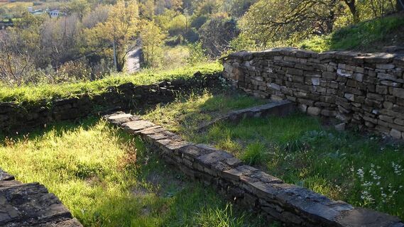 Una volta raggiunta la sommità della dorsale, si prosegue in parte su strada asfaltata e in parte su carrareccia; sono presenti alcuni cartelli con le indicazioni per raggiungere i laghetti delle Noghere, la località di Rabuiese e le cave di arenaria. Queste ultime (oggi rimane attiva la cava Renice) rivestivano grande importanza, in quanto sin dai tempi antichi hanno rappresentato un’importante fonte di materia prima – ne sono esempio il teatro di Aquileia e l’acquedotto romano della Val Rosandra – e di attività per gli abitanti della zona.