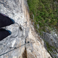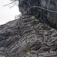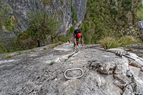 Es muss nicht immer Reibungsklettern sein auf Klettersteigen. Ein echter Eisenweg macht Spaß und man kann ihn vor allem auch mit geübten Kindern gehen, obwohl er lang ist.