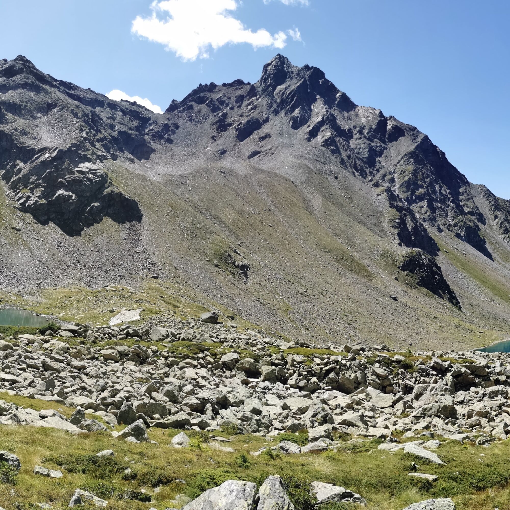 Den Lagh dal Teo gibt es gleich doppelt: Über eine kleine Geländestufe gelangt man vom unteren Bergsee zu seinem noch ein paar Dutzend Meter höher liegenden kleineren Bruder.