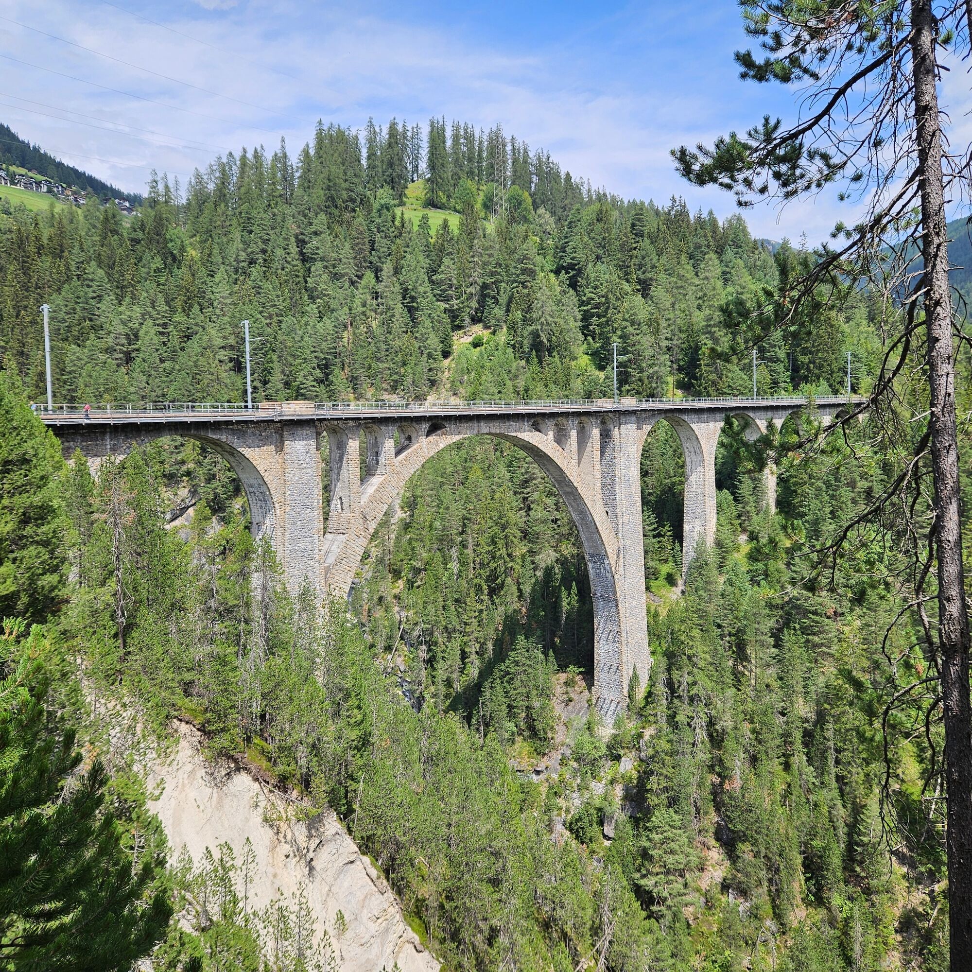 Der Weg führt weiter dem Fluss Landwasser entlang. Nach etwa 1 Stunde und 15 min erreicht man den Landwasserviadukt, wo Sitzgelegenheiten und ein Kiosk zur Rast einladen.