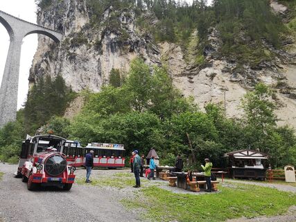 Anreise mit der Rhätischen Bahn nach Filisur, Viadukshuttle bis Haltestelle Schmitten GR Landwasserviadukt