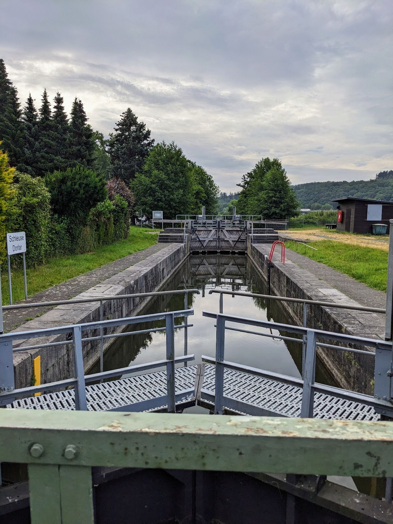 Achtung auf dem Hinweg in den Feldern Richtung Dorlar, kurz vor der Schleuse: nach stärkerem Regen sind hier an einigen Stellen auf dem Weg tiefere Pfützen, es sammelt sich Wasser in den Senken und es kann zu nassen Füßen kommen.