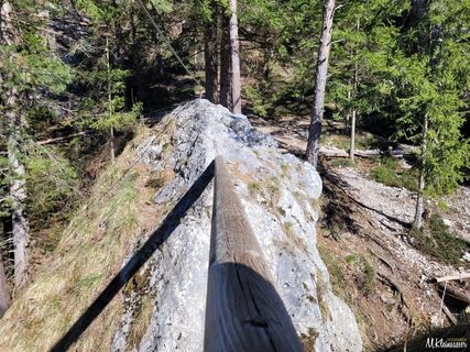 8) Über die Seilbrücke (50m hoch) drüber und dann in einer großen Linkskurve zum Normalaufstieg (Kamin) gehen, dann man zum letzten Abstieg nutzt. Am Ausgang des Kamines unten einfach dem Weg ins Tal folgen und zum Parkplatz.