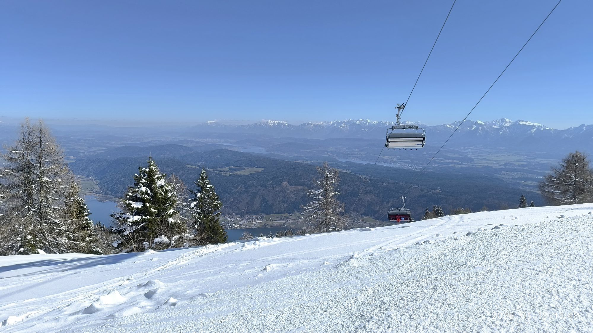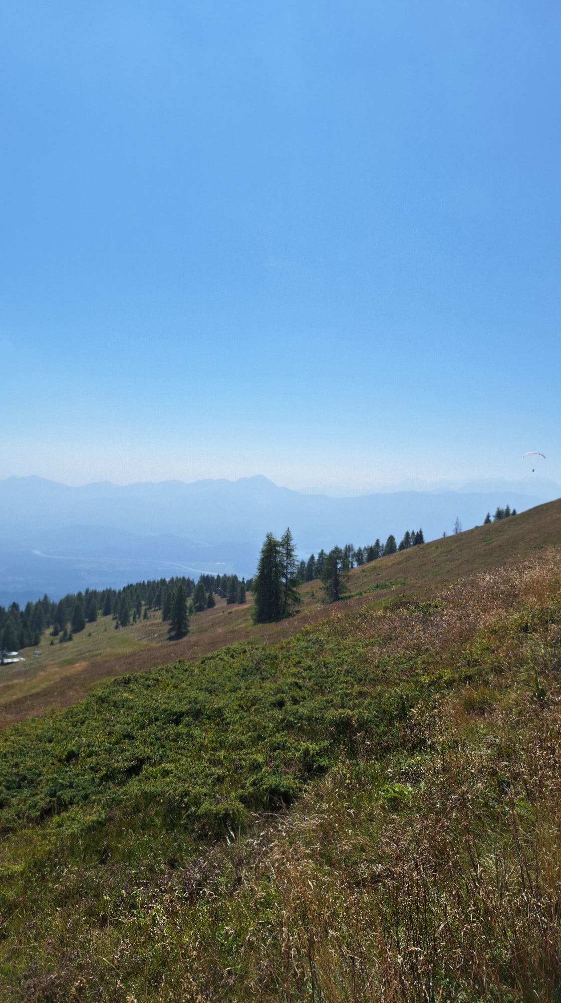 Nach dem lichten Wald erreicht quert man die Liftline des Neugarten Liftes und geht im leichten Anstieg Richtung Alpengasthof Pacheiner bis man die Gerlitzen Gipfelstraße quert und die Himmelspirale erreicht, ein perfekter Platz zum Innehalten und Durchatmen. Weiter geht es Richtung Bergeralm leicht abfallend durch die lichten Lärchenbäume welche in der "Alpinen Kampfzone" Sommer wie Winter den Elementen trotzen.