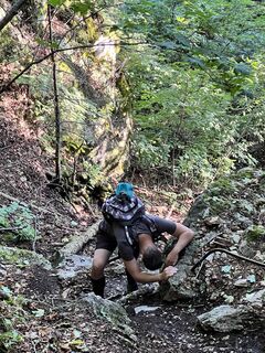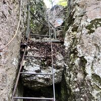 Trekking- bzw. Wanderschuhe. Keine normalen Sportschuhe (wegen den Leitern am Drobilsteig und div. steinigen Abschnitten).