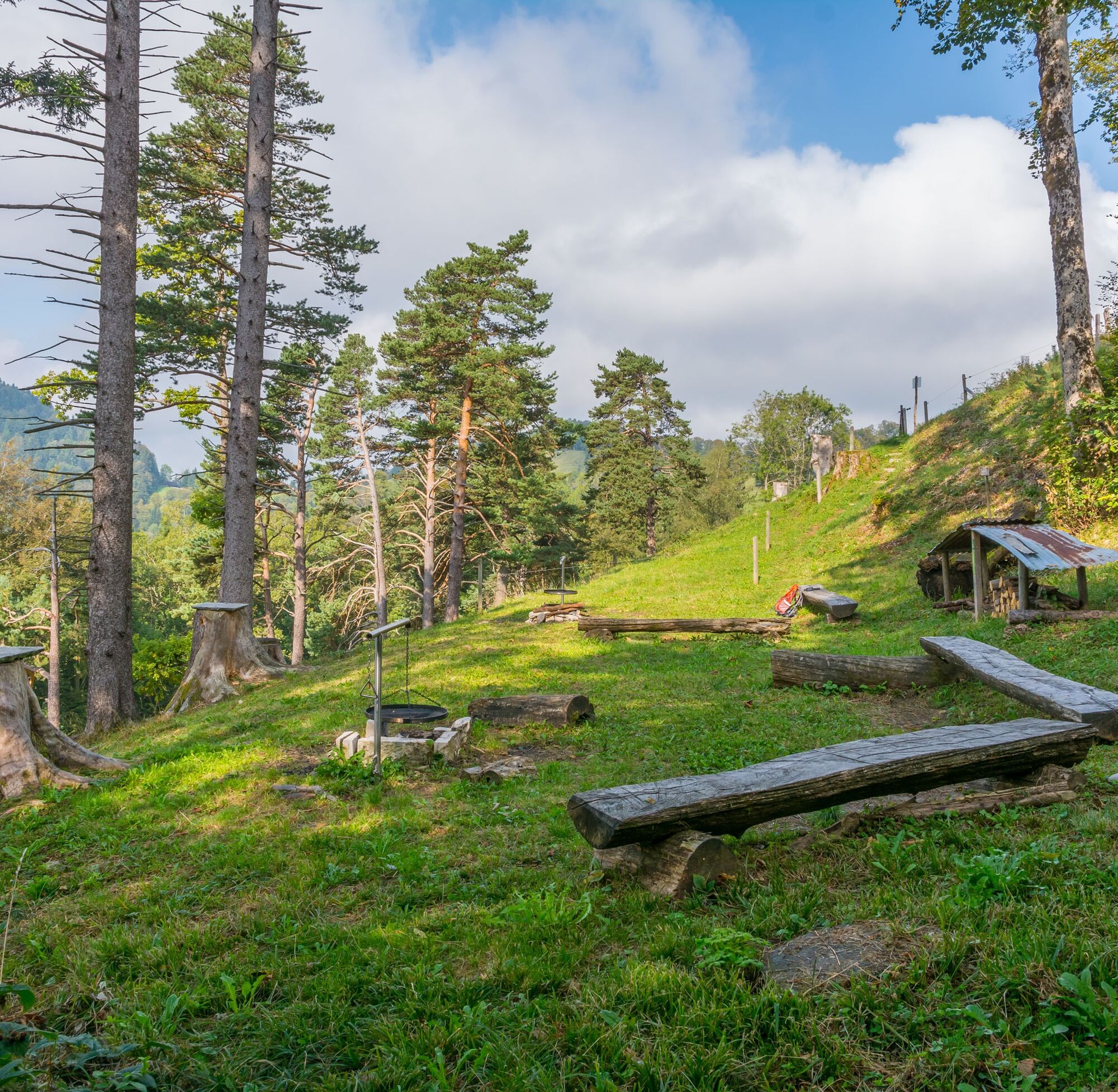 Nach wenigen Metern sind Sie fernab des Verkehrs und können die schöne Aussichten und die vielfältige Natur in Ruhe geniessen. Entlang des Weges durch verschiedene Wälder und über Alpweiden entdecken Sie eine artenreiche Flora und Fauna mit pittoreskem Baumbestand. In der Ergeten laden zwei schöne Grillstellen zu einer Pause ein. In Kaltenbrunnen kommen Sie an einer Trutenfarm vorbei. Hier lohnt sich ein kurzer Stopp, um dem lustigen Treiben dieser Vögel zuzuschauen. Wenige Meter weiter, bei der Alewinde können Sie sich in einem hübschen Hofladen Proviant für die weitere Wanderung oder ein Mitbringsel für zuhause kaufen.