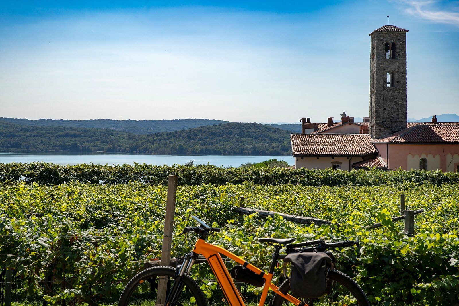 Man radelt in offener Landschaft auf einem einfachen, geschotterten Weg ohne besondere Schwierigkeiten. Etwa auf der Hälfte der Route passiert man die hübsche Gemeinde Azeglio, um dann zum Lago di Viverone zu gelangen, wo eine kurze Pause am Pfahlbautenhafen möglich ist. Von hier beginnt auch das sanfte Auf und Ab, da man am Fuß der Moränenhügel von Ivrea mit spektakulären Panoramablicken auf das Moränen-Amphitheater von Ivrea und den Lago di Viverone ist.