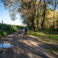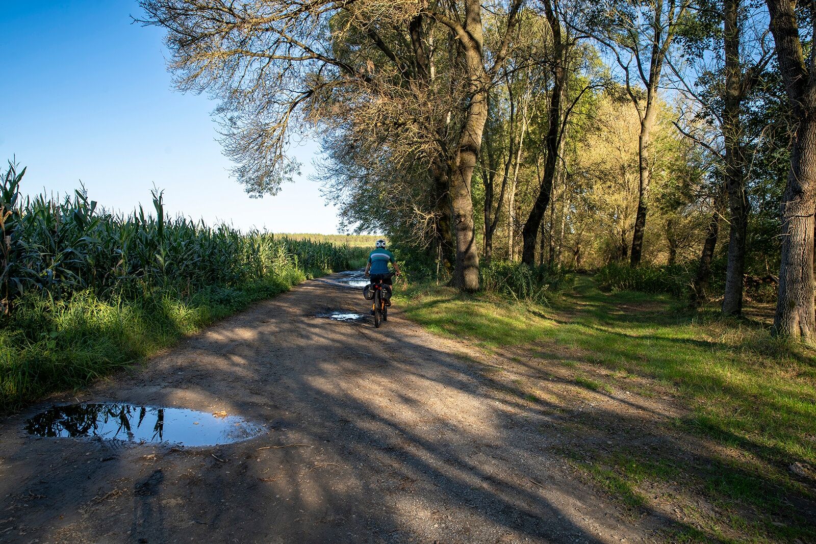 Der gesamte Schotterabschnitt beträgt etwa zehn Kilometer, immer eben und gut befahrbar.