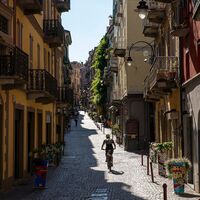 Die historische Altstadt von Ivrea ist fußgängerzone, wer Interesse hat, sie zu besuchen, muss das Fahrrad schieben. Die Straße, die das Zentrum durchquert, ist etwa 800 m lang.