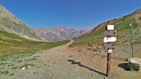 Ab der reizenden Ortschaft “Chialvetta” geht man den Pfad “la Scurcio” zurück und lässt dabei die Abzweigung in Richtung “Colle del Ciabonet” unbeachtet. Man hält sich links und erreicht auf der weitläufigen Hochebene von “Prato Ciorliero” (1959 m) eine den Bergsteigern gewidmete Votivsäule. Der Weg steigt nun in Richtung “Passo della Gardetta” (2440 m) an. Hoch gelegene Weideflächen und Militärbauten, welche als Teil des Alpenwalls in Kalkaufschlüssen ausgehoben wurden und aufgrund ihrer typischen Dolinen und Karstbrunnen gut erkennbar sind, begleiten den Aufstieg. Die Aussicht vom Bergpass ist atemberaubend: der Blick reicht über die gesamte Hochebene der “Gardetta” (seit 2001 Teil der geologischen Erbgüter Italiens) mit ihren Militärstrassen bis hin zum Dolomit-Gipfel “Rocca la Meja”. Auf der anderen Seite ragt auf 3100 Metern die Spitze des “Monte Oronaye” hervor. Der letzte Streckenabschnitt führt bergabwärts zum gleichnamigen Rifugio (Berghütte) des Italienischen Alpenvereins (CAI).