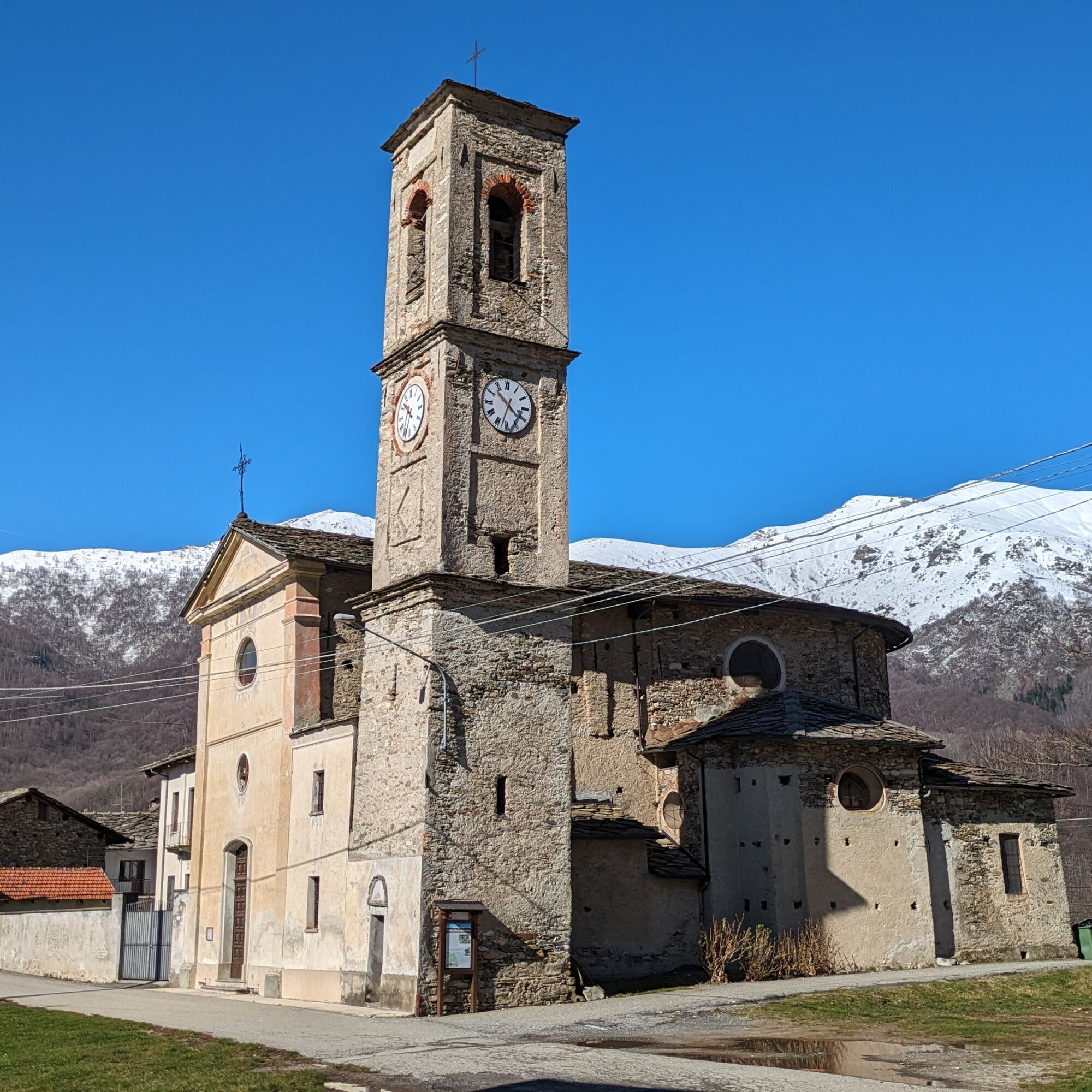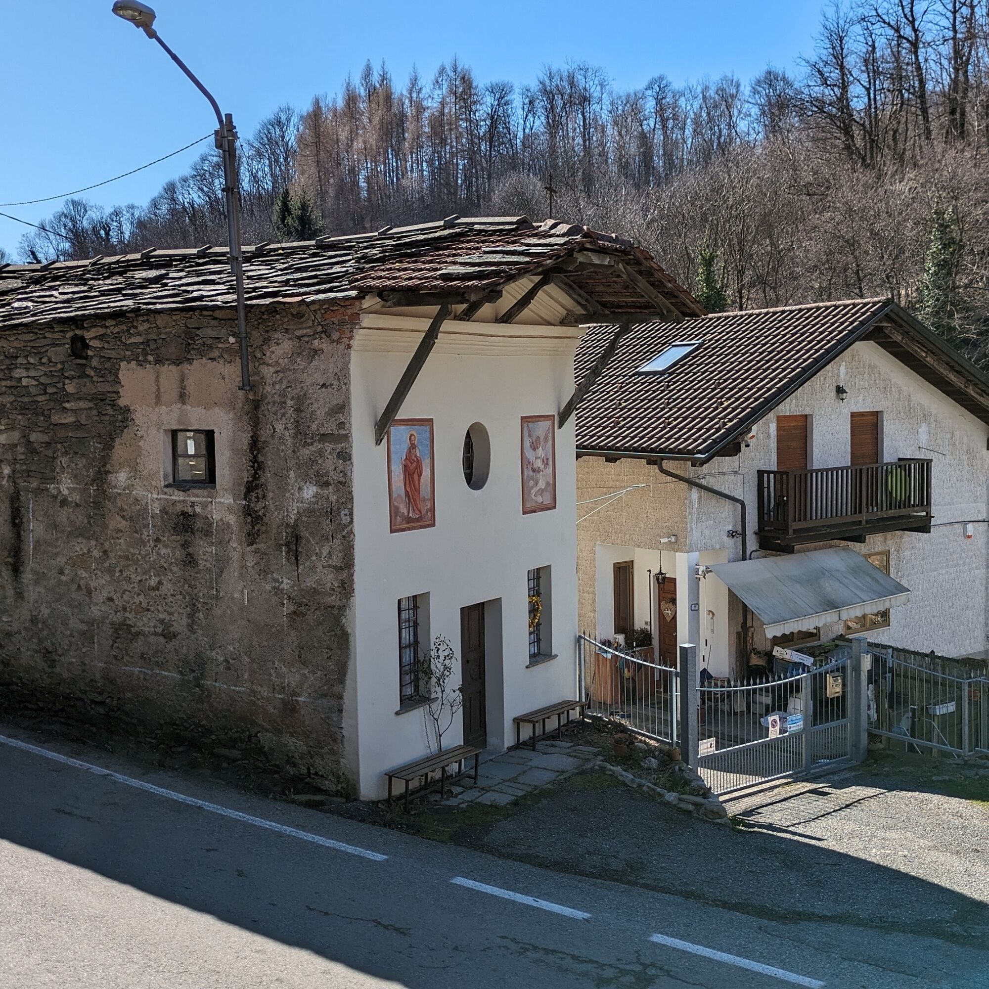 Vor der Kapelle beginnt der Karrenweg (Wegmarkierung 412), der die Häuser Prere erreicht, dann überquert man den kleinen Weg und geht weiter bis zu den Häusern Fassero, wo man auf einer Fahrstraße läuft und anschließend links auf die Asphaltstraße abbiegt und ihr für einen kurzen Abschnitt folgt. Rechts befindet sich dann ein Pfad, der zu den Häusern Fiorio führt, wo sich ein Brunnen befindet. Man folgt dem Pfad bis zu einer Gabelung, die man links nimmt, um die Asphaltstraße zu erreichen, die nach Piano Audi führt, wo es einen Lebensmittelladen, eine Bar/Restaurant und einen Brunnen gibt.