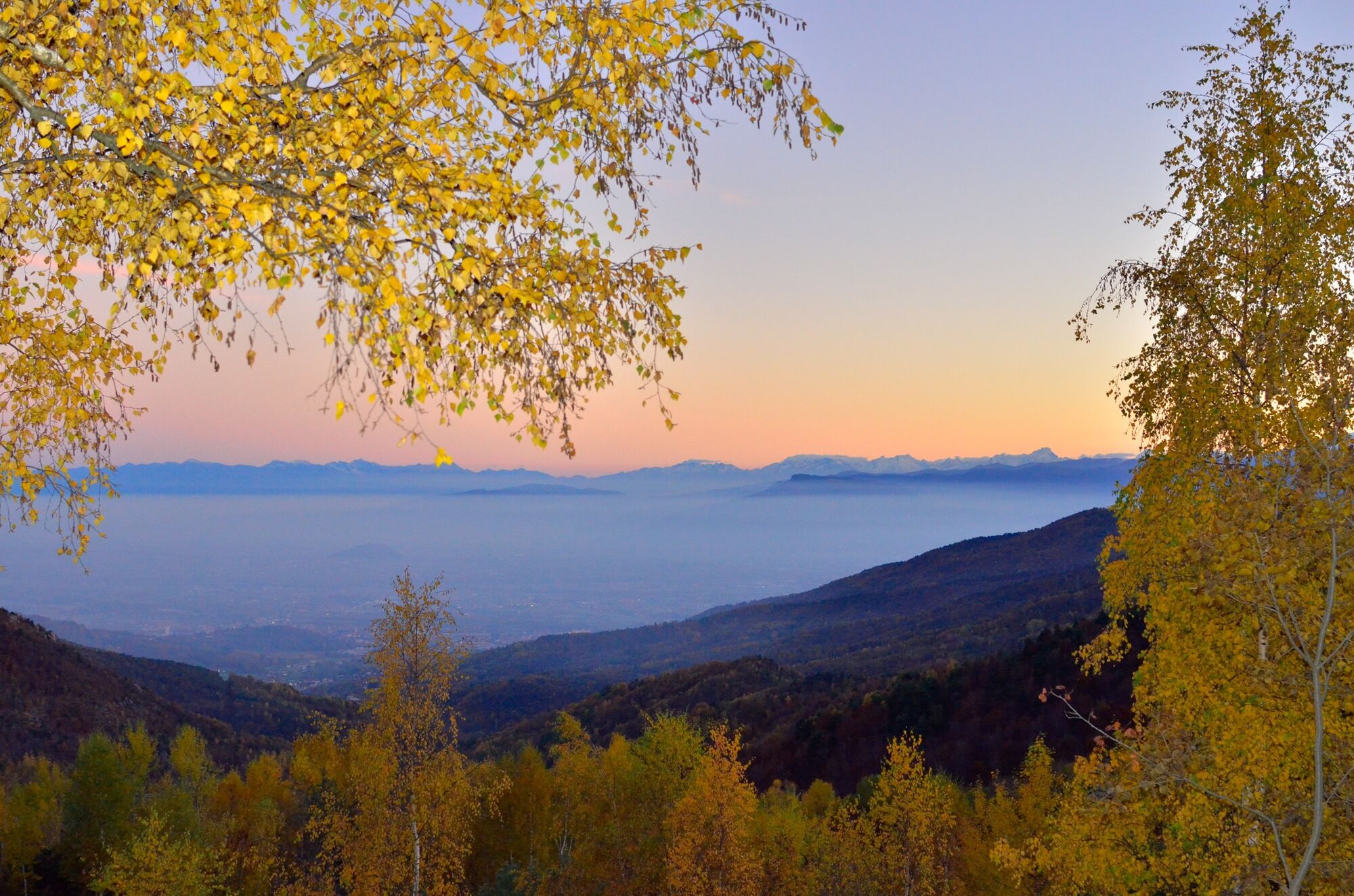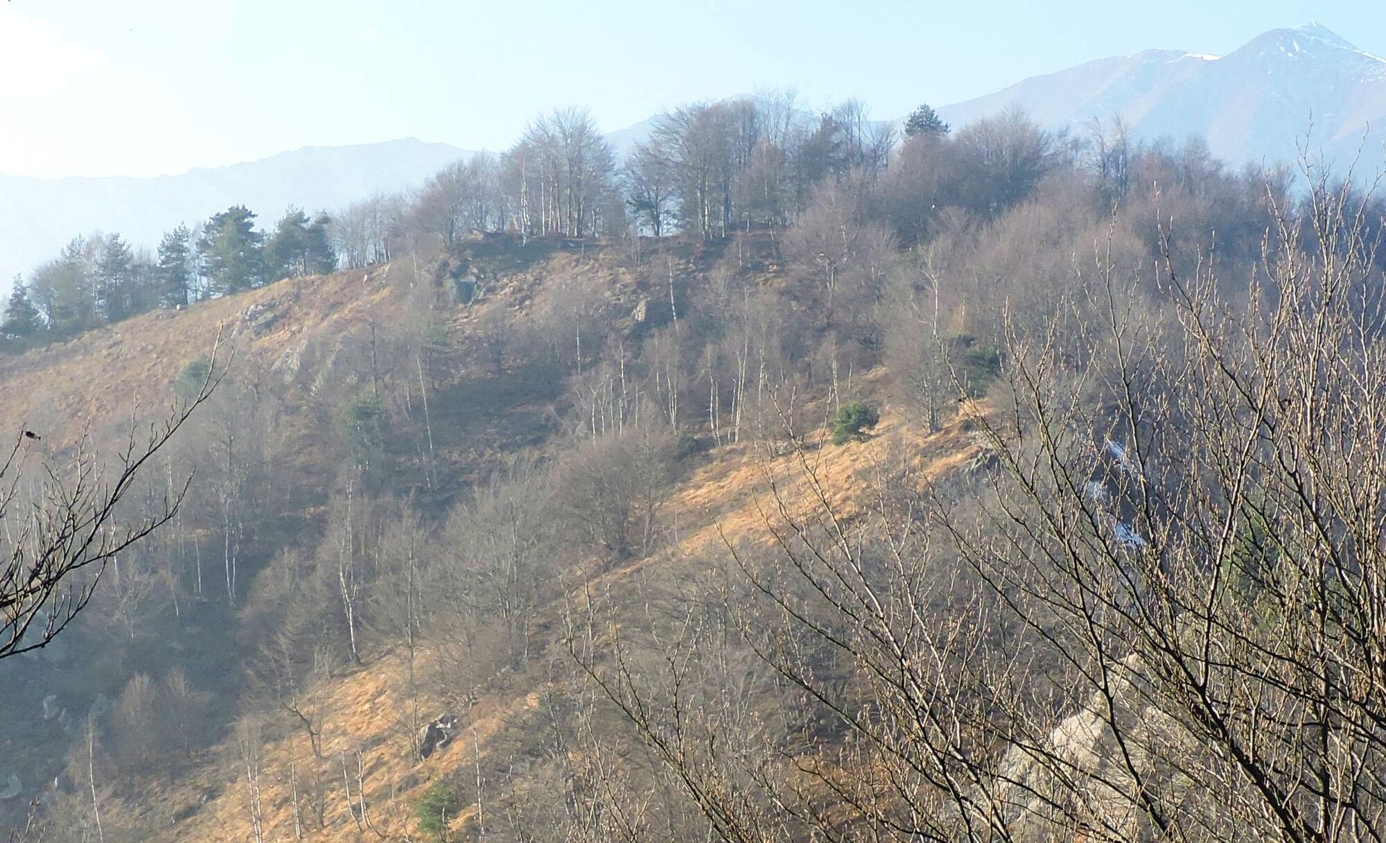 Weiter geht es in kurzer Zeit zum Colle Colletto (1.333 m) und dann zum Monte Sette Confini (1.358 m). Von hier steigt man zum Colle Sperina (1.302 m) hinab, auf dem Wasserscheide mit dem Tal des Chisola (Cumiana).