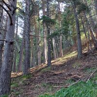 In prossimità della chiesetta, svoltare a destra e attraversare tutto l’abitato. Poco dopo la fontana, imboccare nuovamente sulla destra il sentiero n. 6 e proseguire in salita fino alla croce bianca. Superata la croce, scendere leggermente verso sinistra fino a raggiungere la strada forestale del Parco Gran Bosco.