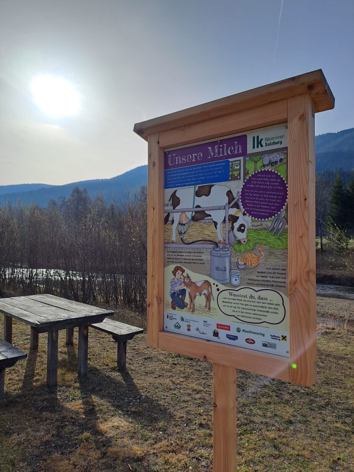 Der Themenweg in Unternberg lädt dich zu einem kurzen, informativen Spaziergang entlang der Mur ein. Auf rund 800 Metern erwarten dich sechs liebevoll gestaltete Schautafeln, die den Arbeitskreislauf der bäuerlichen Arbeit anschaulich erklären