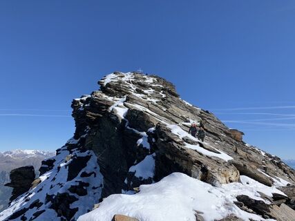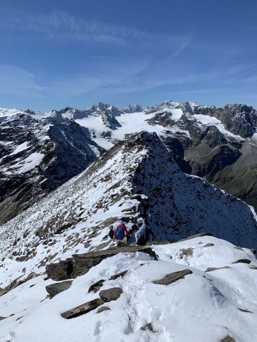 Ausgangspunkt ist der Parkplatz am Gasthof Stallwies (1900 hm). Der Weg Nr 5 beginnt an der alten Mühle und geht zunächst durch Wald bergauf. Oberhalb der Baumgrenze dann über etwas flacheres Gelände, dann steiler aufwärts, bis das Gelände blockig wird. Nach einem flachen Plateau geht der Schlussanstieg über einen verblockten Hang zum Gipfel. Hier liegt im Herbst schon mal Schnee, der die eigentlich einfache Tour spannender macht. Vom Gipfel aus hat man eine gigantische Rundumsicht auf die Ötztaler Alpen mit der Weisskugel, der Ortlergruppe mit Ortler, Cevedale und zahlreichen anderen Dreitausendern.