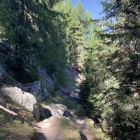 Der Rückweg geht zunächst den gleichen Weg bis zu dem flachen Plateau. An einem großen Block sind der Weg Nr 5 (gleicher Rückweg) bzw. der Weg Nr 5a angeschrieben. Letzterer führt rechterhand in ein kleines Seitental, wo man auf den Weg Nr 34 trifft. Diesem folgt man zunächst abwärts bis zur Schluderalm. Ab dort führt der Weg der Höhenlinie entlang zurück zum Gasthaus Stallwies zur wohlverdienten Einkehr.