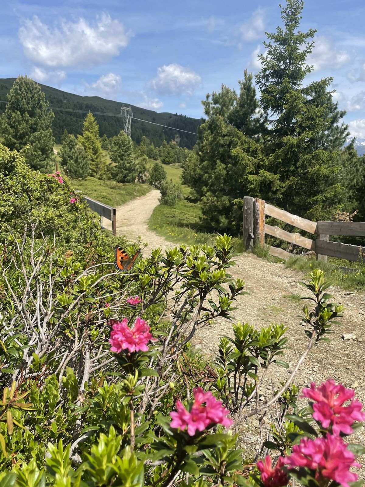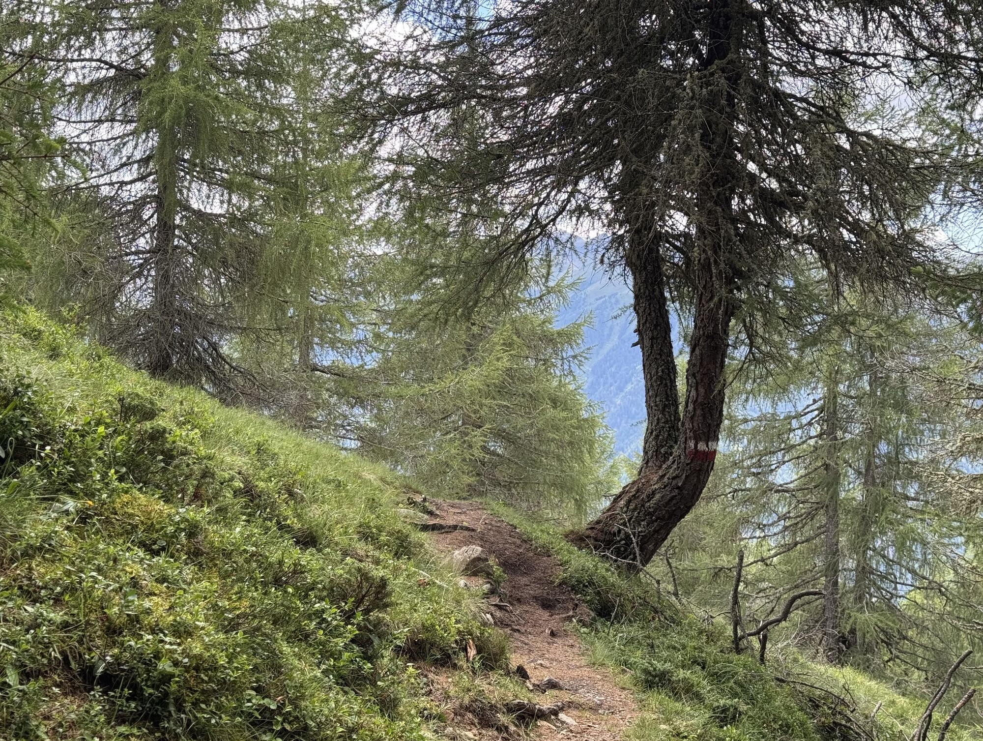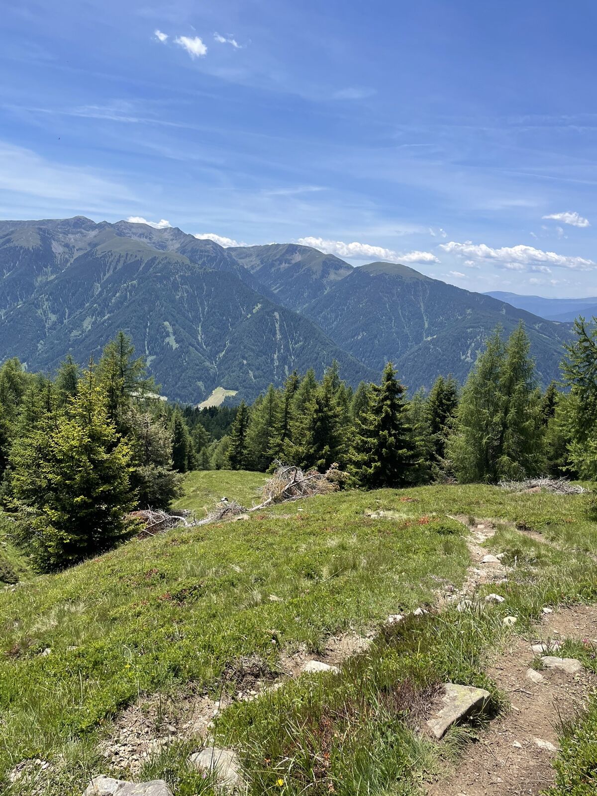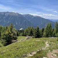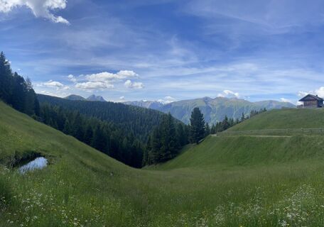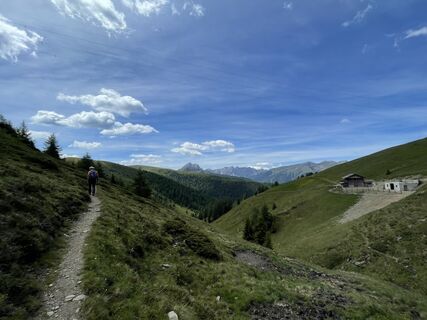 Gebührenpflichtiger PP (mit Lüsner Card gratis) Schweiger Böden. Aufstieg anfangs in schönem Nadelholzwald, später auf der Alm selbst. Teils Almstrassen (Naturbelag), grösstenteils aber Bergpfade zwischen Alpenrosen und Heidelbeeren.