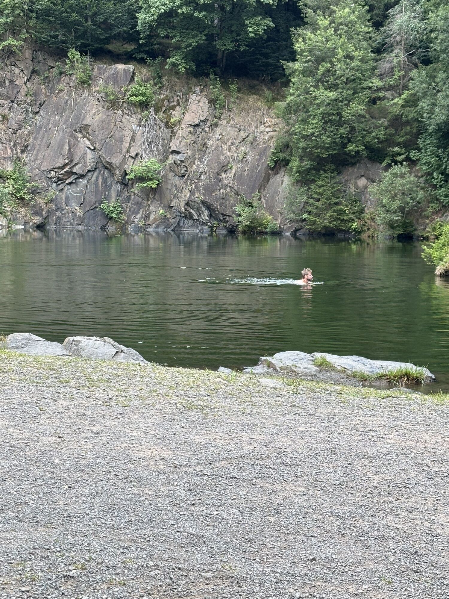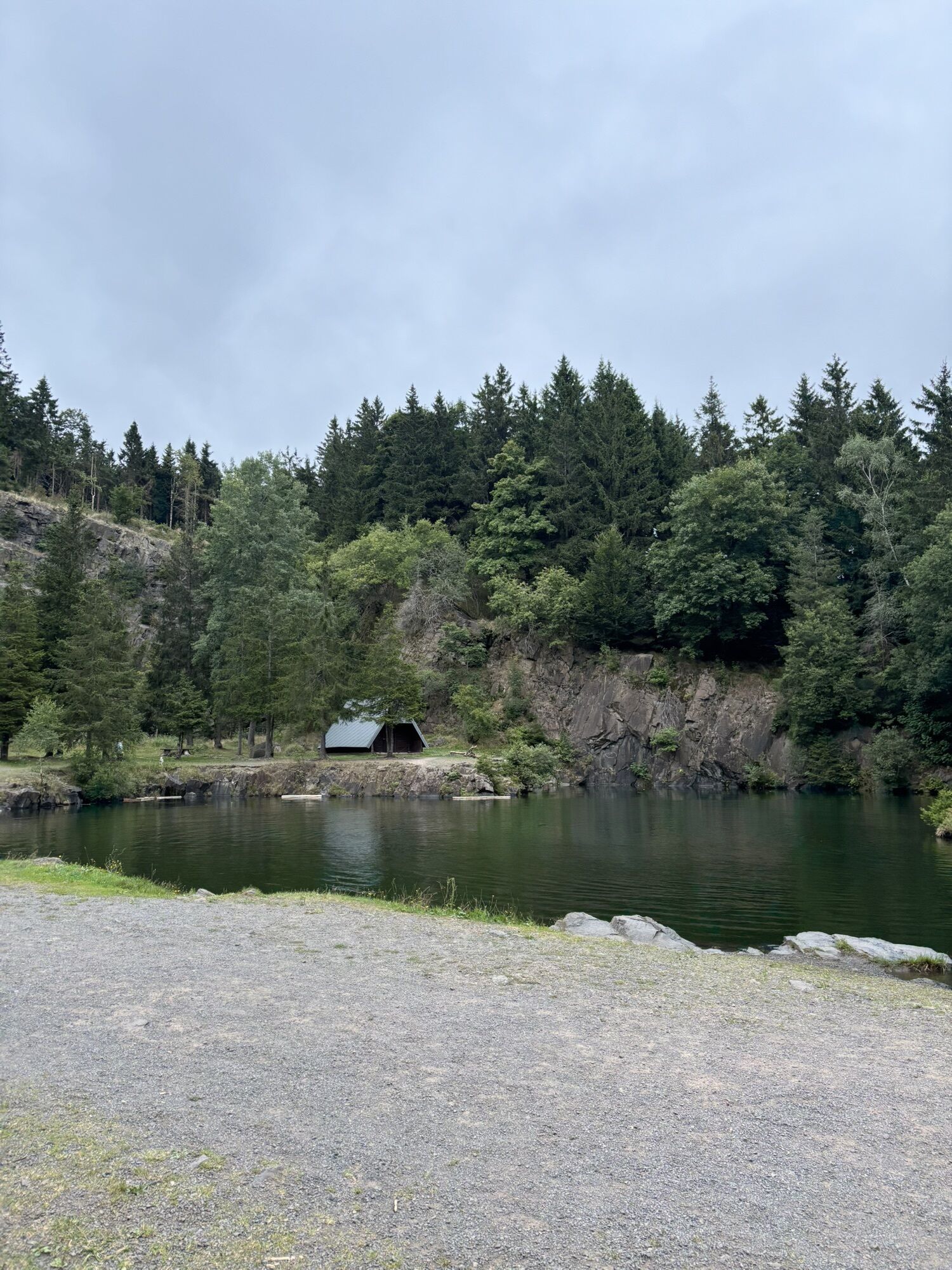 Das absolute Highlight der Strecke ist der kleine, aber feine Bergsee. In einem alten Steinbruch der einst zur Diabasgewinnung angelegt wurde, ist er der Mittelpunkt in dieser wunderschönen Naturkulisse auf knapp 780 Metern. Baden können hier aber nur Schwimmer, da das Ufer aus abrupt abfallenden Felskanten besteht, welche 6 bis 13 Meter tief bis zum Grund des Sees reichen.