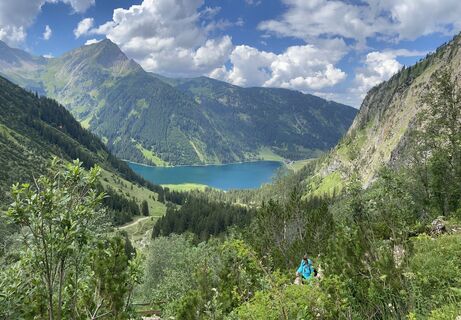 Start vom Parkplatz Richtung Vilsalpsee, eine circa 30-minütige, gemütliche und ebene Wanderung zum warm werden, linker Seite am See vorbei, nach circa 400 m geht es Links nach oben, der teils steile Anstieg...