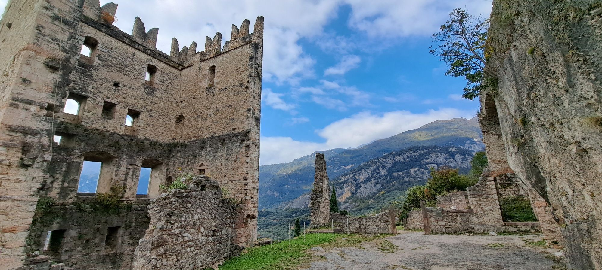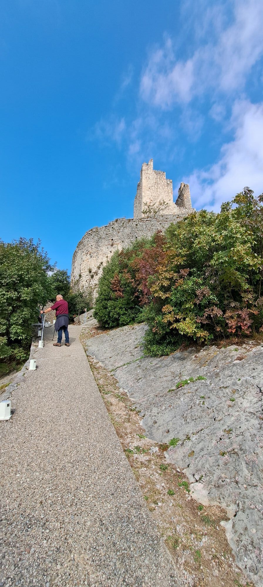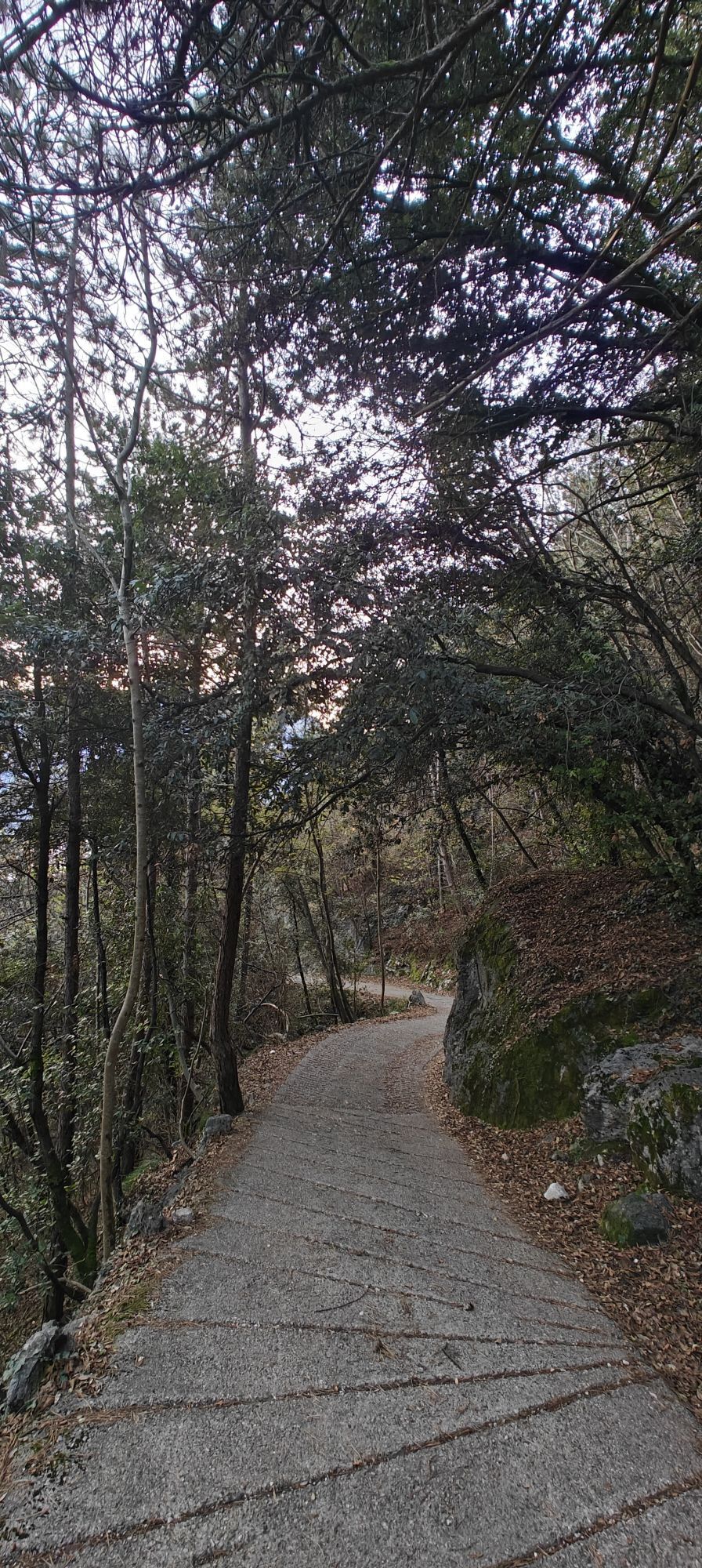Bei Foci San Giacomo fahren Sie weiter in Richtung Deva und biegen nach dem Aufstieg zur Kirche San Lorenzo rechts auf den Abhang ab, der zum Aussichtspunkt GROM führt. Nachdem Sie das historische Dorf Frapporta passiert haben, erreichen Sie das Dorf Tenno und folgen in der Nähe des Rathauses den Schildern für den 'Bussè Naturlehrpfad'. Anschließend schließen Sie sich dem Pil-Weg an, der nach einem kurzen ebenen Abschnitt zur Volta di No führt. Kurz nach den Schildern für Varignano (ein mit Zement befestigter Weg) befindet sich links (in der Nähe eines großen Mastes) der kleine Pfad, der den Rio Bordellino überquert (achten Sie auf die kleine Holzbrücke zum Überqueren). Nach der Brücke geht es rechts weiter zur Straße für Padaro, diese kurz hinaufsteigen und dann rechts dem Abzweig zur Olivaia di Arco folgen, dem Sie bis zur Rilke Promenade unterhalb der Burg von Arco folgen (direkt nach dem Balkon/Aussichtspunkt links abbiegen), um die Brücke von Arco zu erreichen.