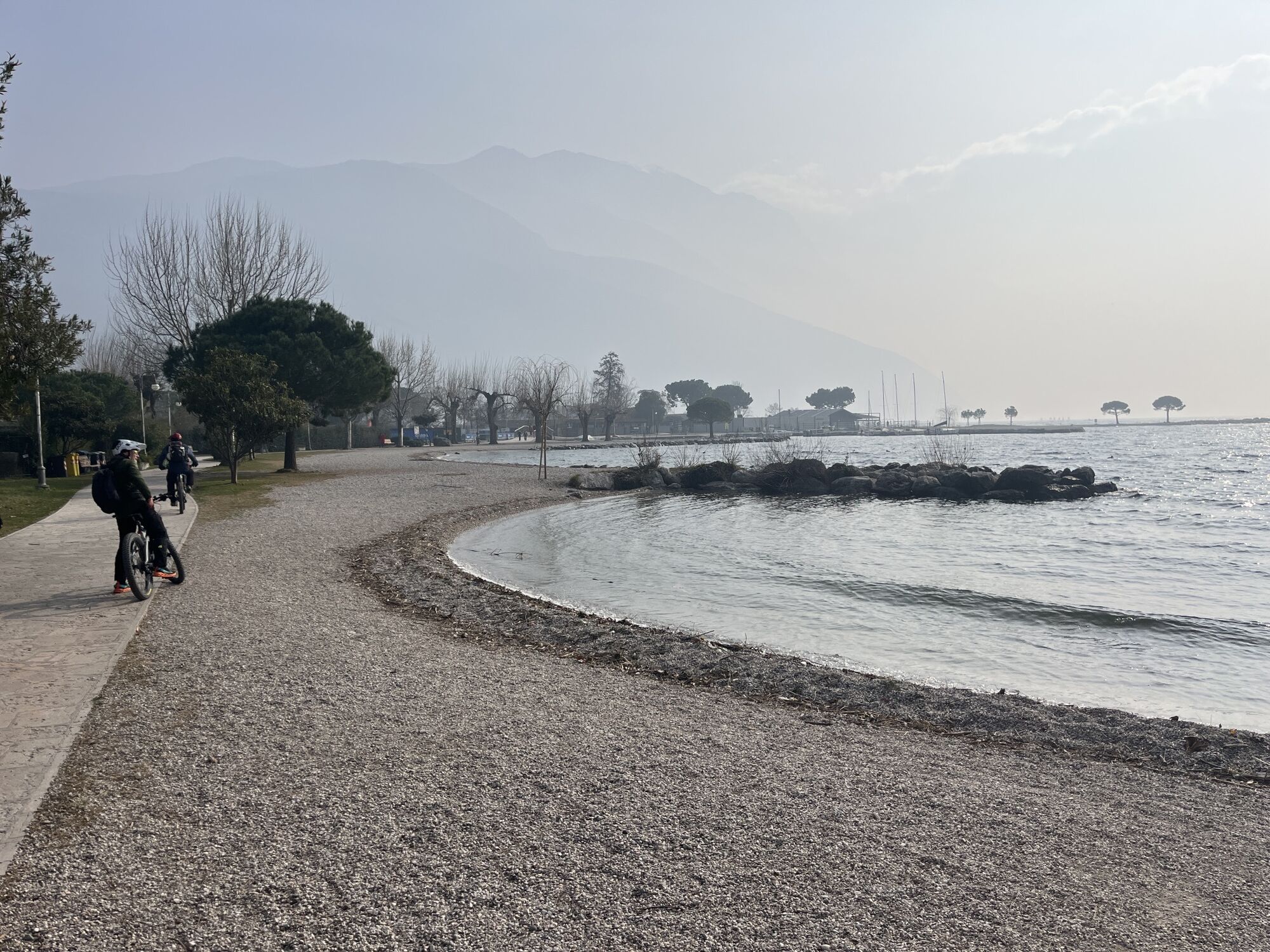 Abfahrt von der Piazzetta Lietzmann in Torbole sul Garda, um die Uferpromenade ins Zentrum von Riva del Garda zu nehmen. Nach dem Durchqueren der Altstadt folgen Sie den Schildern zum Bastion und biegen nach einigen Kurven rechts auf den Schotterweg ab, den Schildern für Santa Maria Maddalena/Garda Trek Medium/Top folgend.