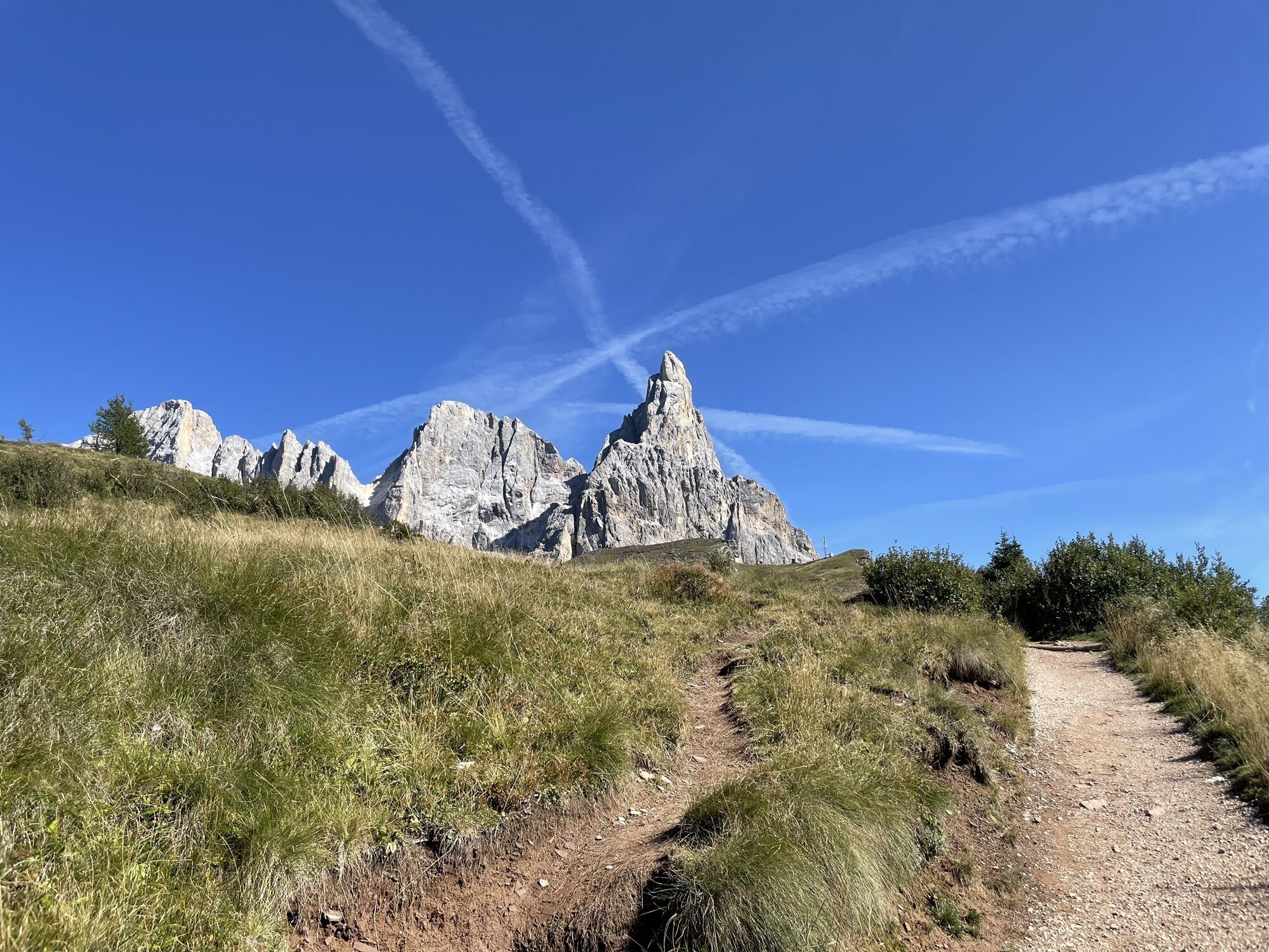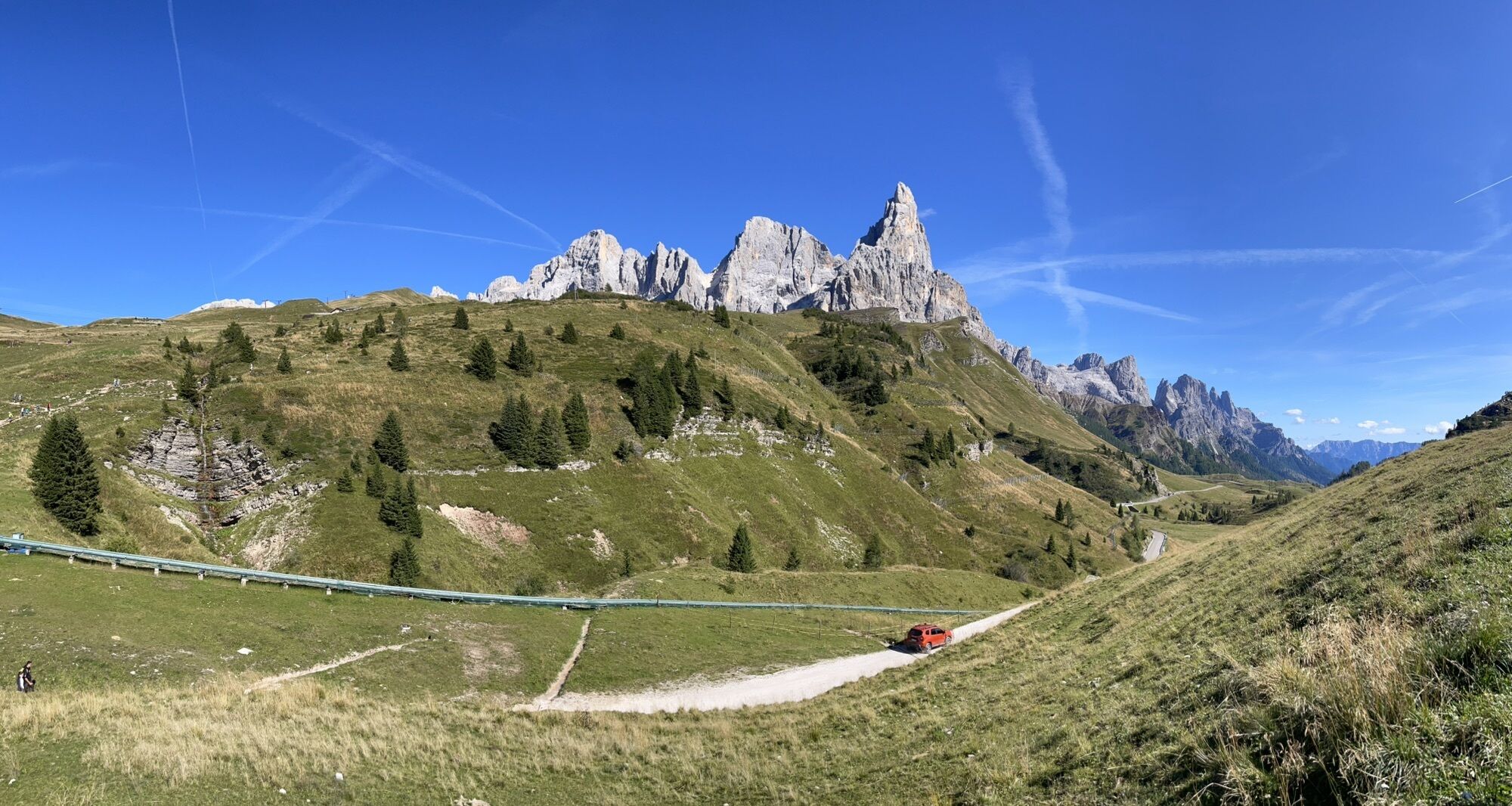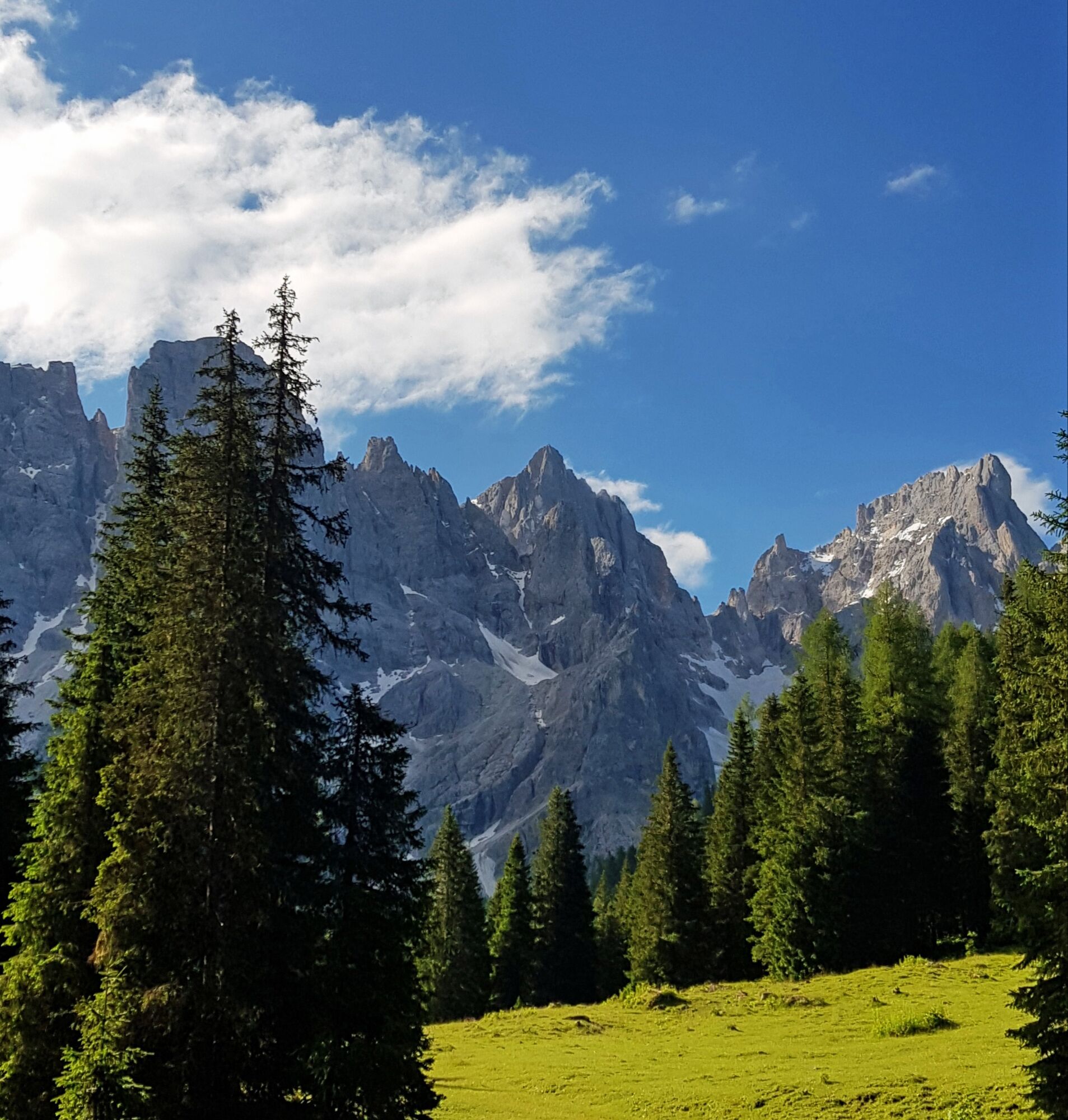 Umgeben von Bergen von bezaubernder Schönheit beginnt der Abstieg zur Schutzhütte “Capanna Cervino” mit weitreichendem Blick auf die Palagruppe mit der Felsturm “Cimon della Pala”, Rolle Pass sowie die Lagoraiberge. Zwischen ausgedehnten Almweiden kommt man bald zur Sennerei “Juribello”, bekannt für ihre köstlichen Milchprodukte. Der letzte Abschnitt führt auf bequemem Waldweg wieder zum Parkplatz.