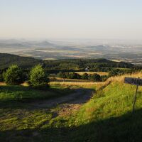 Anschließend überqueren wir die wunderschönen Wiesen von Dlouhé Louky bis zum Rand des markanten Gipfels Stropník. Mit einem kleinen Abstecher können wir auch auf seinem felsigen Gipfel stehen, der jedoch mit Wald bewachsen ist. Der Buchenwald im Inneren wird Sie jedoch sicherlich dafür entschädigen.