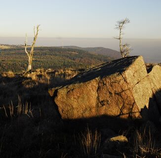 Wir parken beim Restaurant Rozcestí und machen uns auf den Waldweg nach Westen zum höchsten Berg des östlichen Erzgebirges – Loučná. Dort gibt es Felsen, die dem Ort eine raue und fotogene Atmosphäre verleihen....