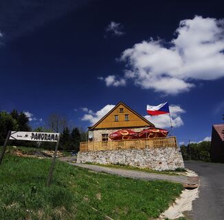 Von hier aus ist es nicht mehr weit zum berühmten Aussichtspunkt Dušanova vyhlídka mit herrlichem Blick auf die Region Teplice. Über Vysoká MýÅ¥ kehren wir zum Restaurant Rozcestí zurück, wo wir uns stärken und ausruhen können.