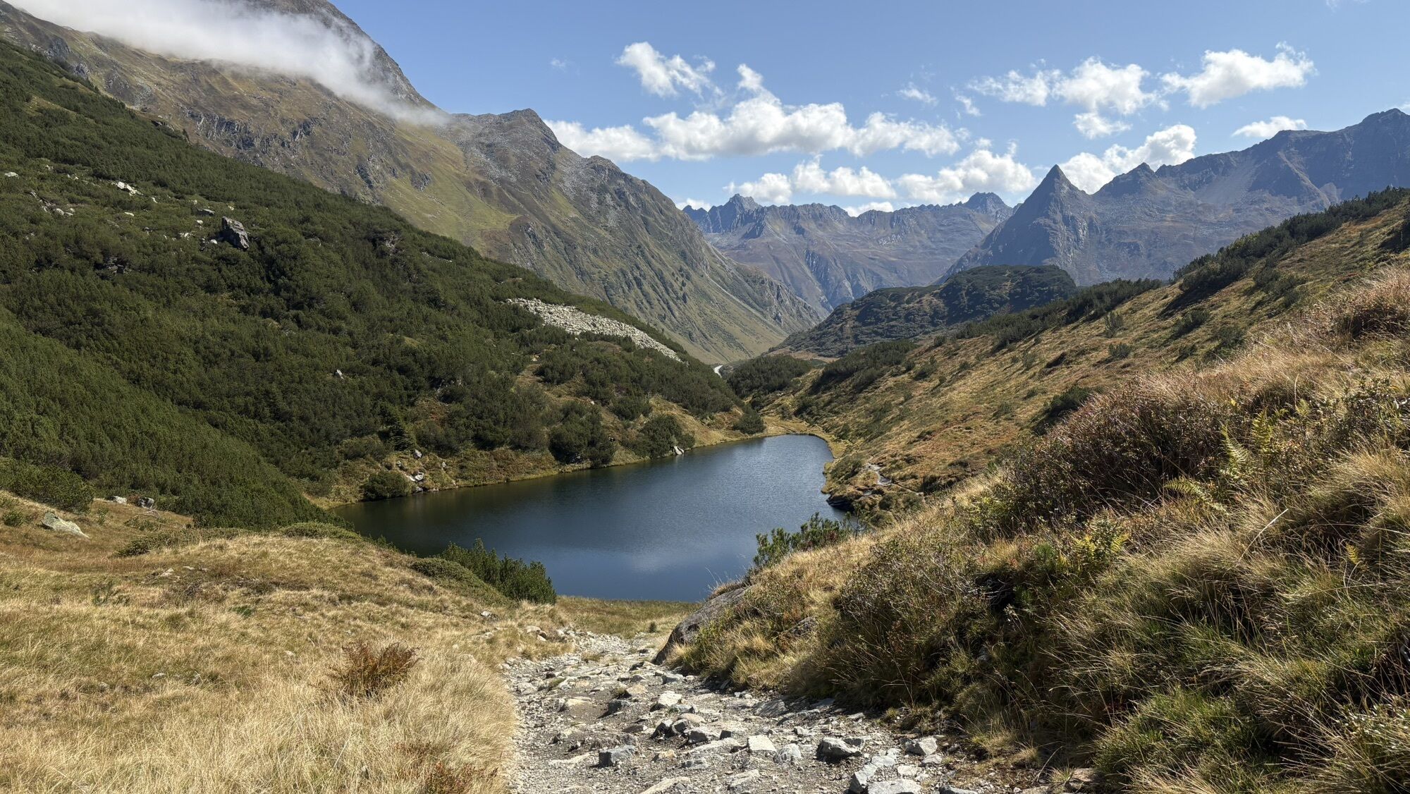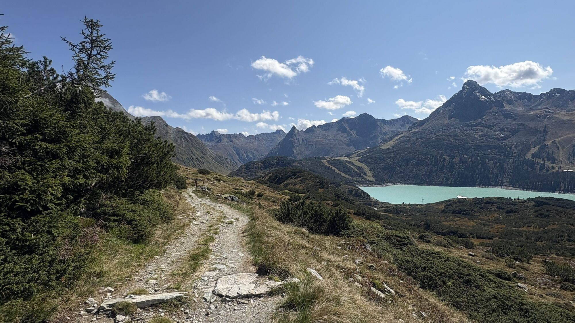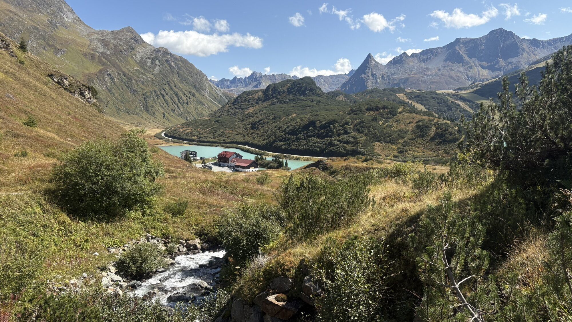 Von der Heilbronner Hütte aus nun einfach das Tal hinablaufen Richtung Verbellaalpe. Dort dann weiter links den Weg der nun noch einmal etwas hinauf geht Richtung Zeinisjoch zurück.
