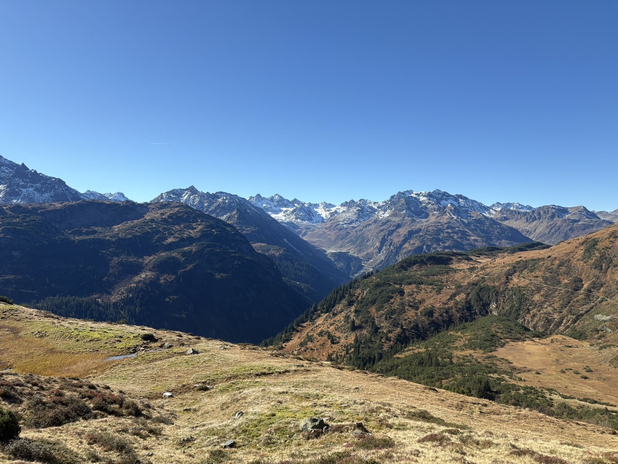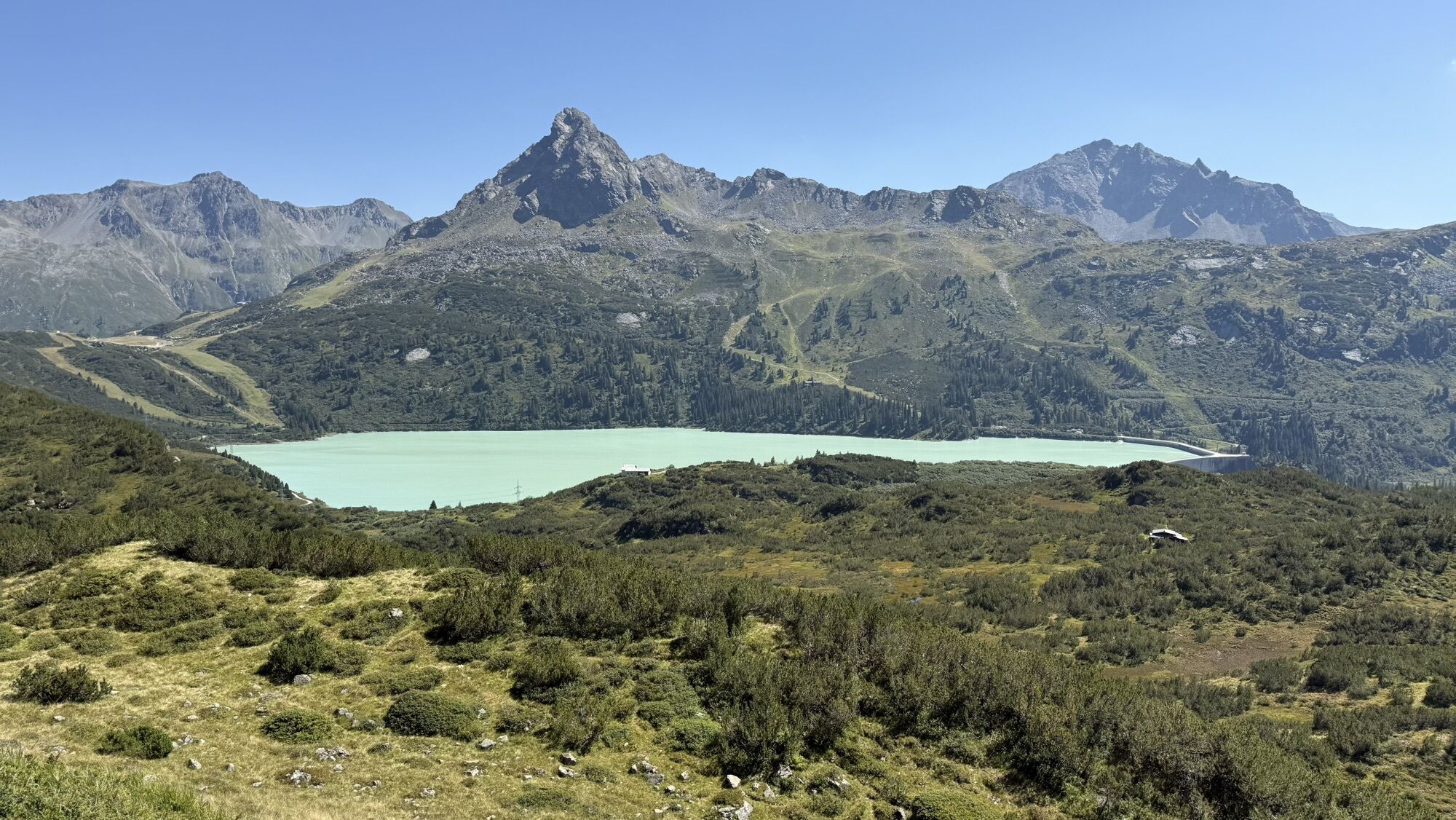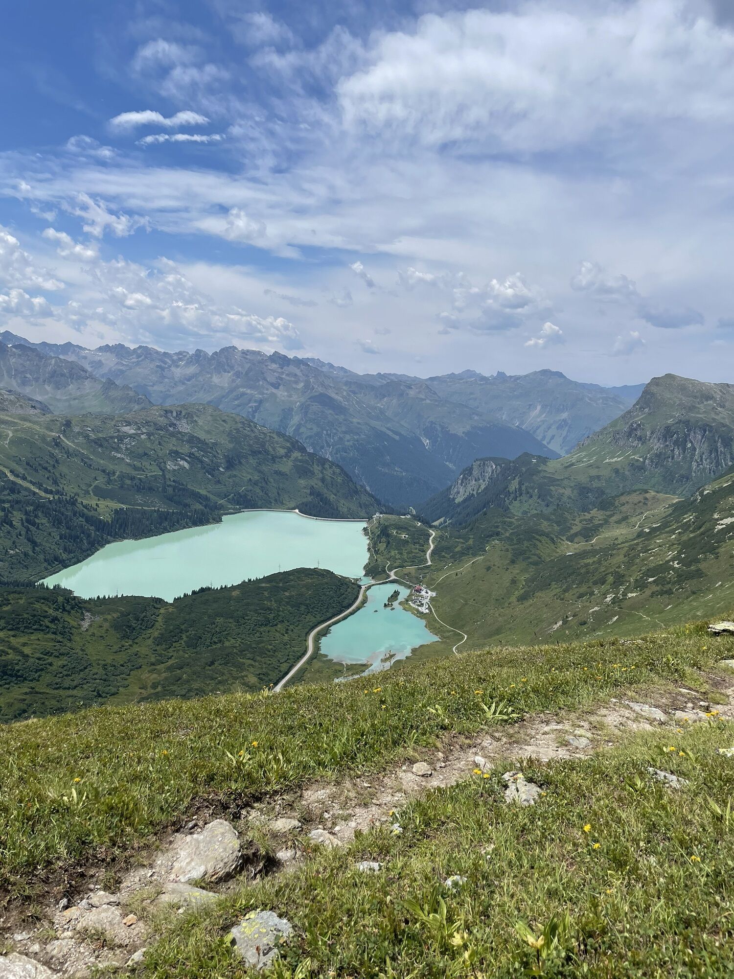 Von der Heilbronner Hütte aus nun einfach das Tal hinablaufen Richtung Verbellaalpe. Dort dann weiter links den Weg der nun noch einmal etwas hinauf geht Richtung Zeinisjoch zurück.